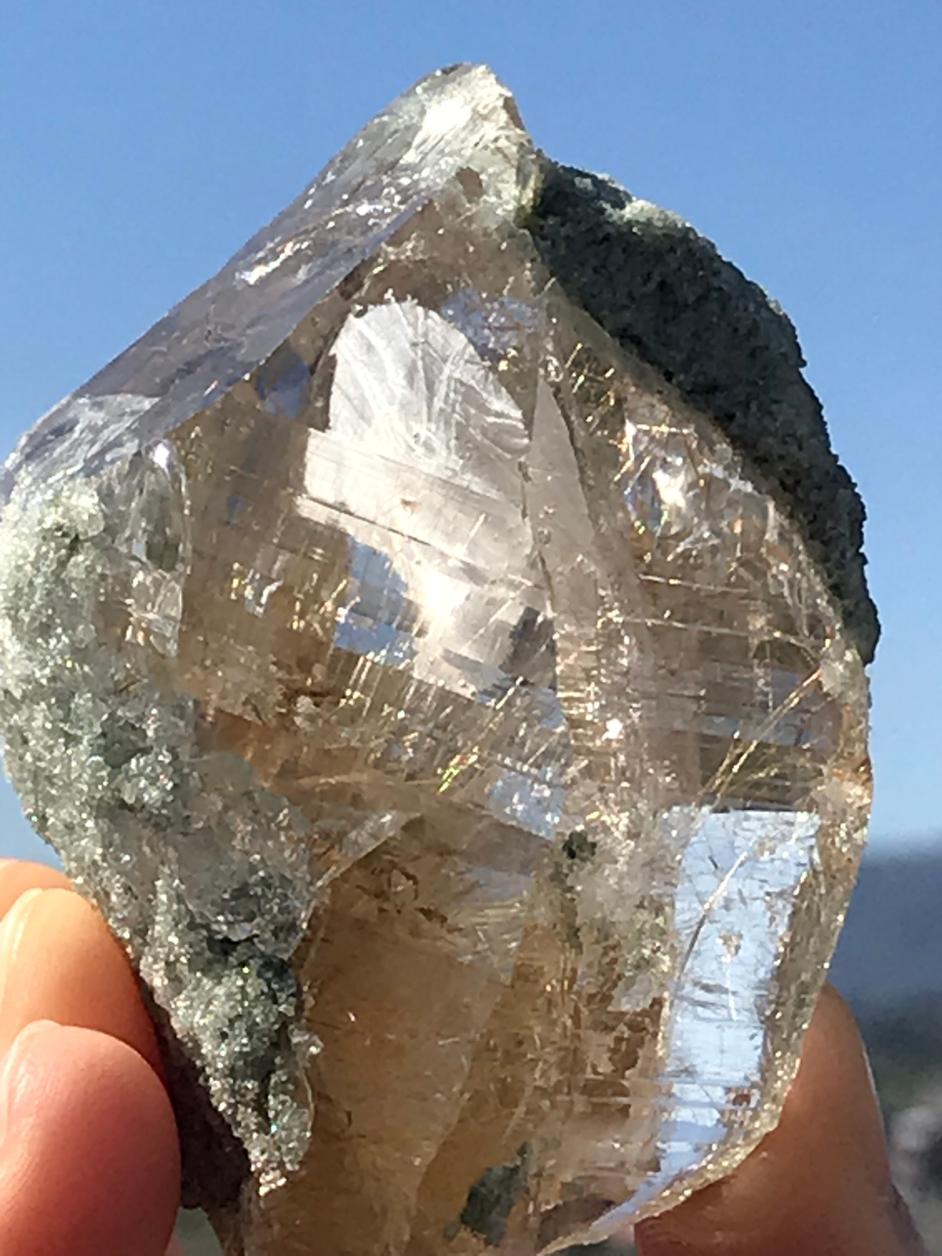 氷のような抜群の透明度で、近年レインボーやルチル、クローライトが内包されたものが産出されています。